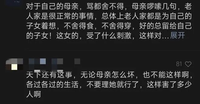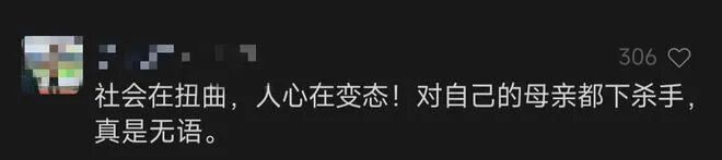大家纷纷留言发表自己的看法:“社会在扭曲!人心再变态!对自己的母亲都下杀手,真是令人无语!”