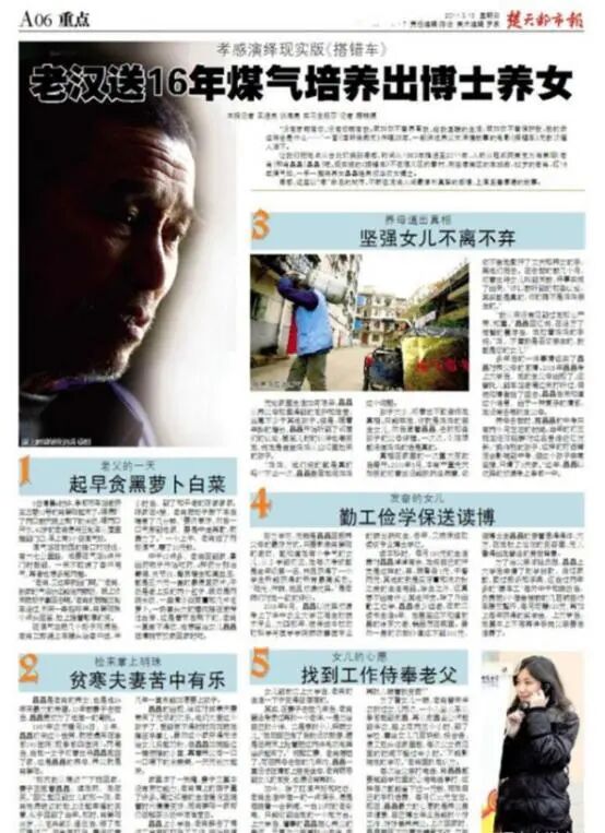 一时之间,“六旬老汉靠扛煤气罐将养女培养成博士”的励志故事感动了无数网友。