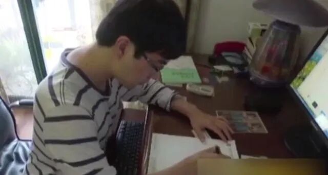 他在卷子上奋笔疾书,在书写答案的同时,也在书写着自己的未来。