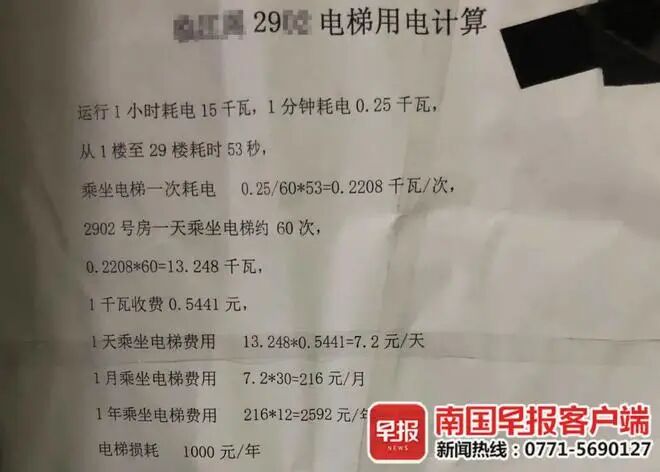 老太太拿到了催缴单,上面写着由于她频繁乘坐电梯去捡废品,一天60多次,8年以来需要收取电梯运行电费2592元/年,电梯损耗1000元/年,总共28736元。老太太看到2.8万已经呆住了,据了解业主巫婆婆平素喜欢捡垃圾,每天坐电梯60多次,而电梯运行1小时耗电15千瓦,而她家住在29楼,一次上去就53秒,巫婆婆一天乘坐电梯光电费就7.2元,而电梯损耗一年1000元,这么算下来8年就2.8万。