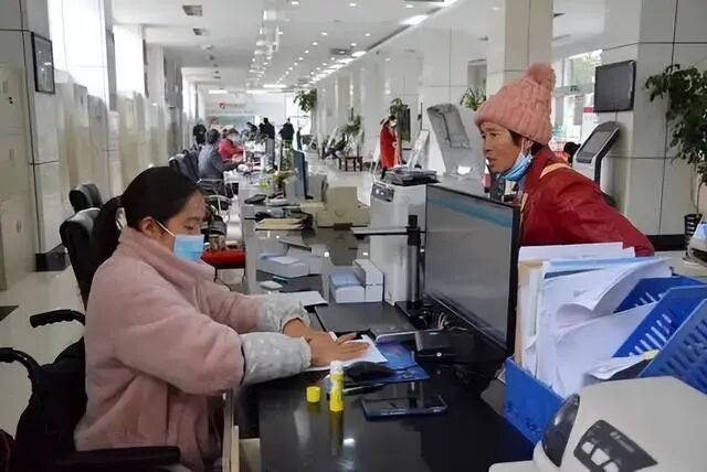 在政务服务中心大厅,她要负责为其他残疾同胞办理残疾证。