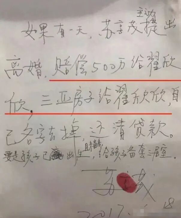 如果有一天,苏享茂主动提出离婚,要赔偿500万给翟欣欣;三亚的房子过户翟欣欣,自己名字去掉,还清贷款。要是孩子已出生,且未备房,给孩子备一套三居室。