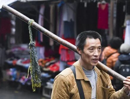 很多肯出苦力的人,就通过一根棒子,为商家运送货物。