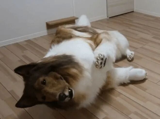 在Toco主页发布的视频中我们可以看到一只黄白相间色的大狗狗端坐在房间中央。它时而站立,时而卧倒,还会对着镜头挥动脚丫子,憨态可掬可爱极了。如果你仔细观察狗狗的动作,却能发现它的动作并不是那么连贯自然。其实这并不是真正的狗狗,而是穿着狗狗布偶装的Toco。
