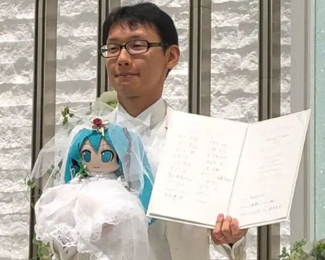 就在这名Toco在网络上渐渐小有名气时,4年前那位选择迎娶初音未来的日本小哥再次引起了我们的关注。2018年,近藤显彦宣布自己与知名虚拟偶像初音未来结婚,和其他正常夫妻一样,他们举办婚礼、带戒指、宴请宾客。在婚礼上近藤显彦向来宾们讲述了他和初音未来之间感人的故事。