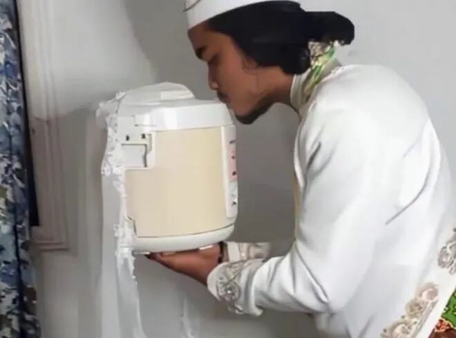 可能有人觉得这两位日本小哥的行为实在是太荒唐了,其实除了日本以外世界上各国都出现过让人惊讶的报道。印度男子弗罗兹.甘地就曾因为喜欢吃中国美食而喜欢上了可以做多种中国美食的电饭煲。按弗罗兹.甘地本人的说法:电饭煲既听人话饭又做得好吃,每次都能满足我想吃中餐的愿望,简直就是个完美的老婆!