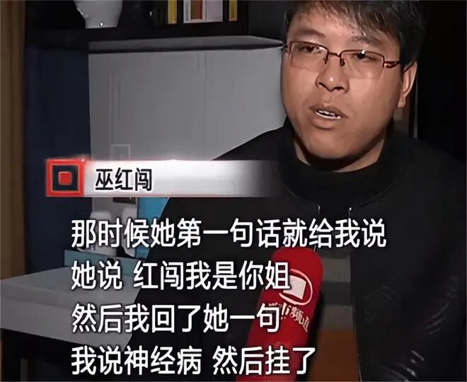但遗憾的是,对于这位莫名其妙多出来的姐姐,巫红闯并不相信,一度以为对方是个骗子,直接挂断了电话。