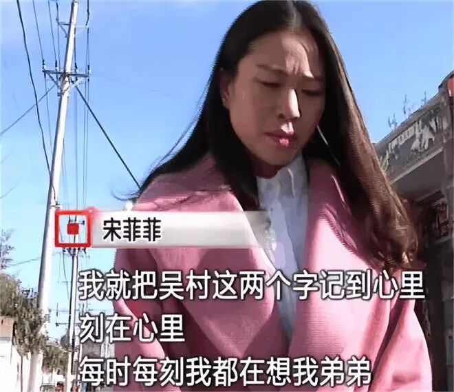 当听到弟弟的声音以后,宋菲菲声音颤抖地表达了身份:“我是你姐姐”。