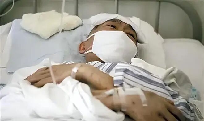 住院才几天,白血病症彻底爆发,很快高烧不退,嘴角出血。