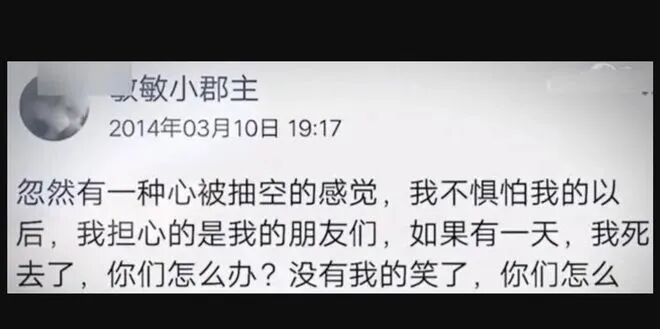 这样的结果让人如何不心碎!让赖敏绝望万分!她一连多日都睡不着觉,最后在空间发了这条动态,表露出自己有轻生的念头。