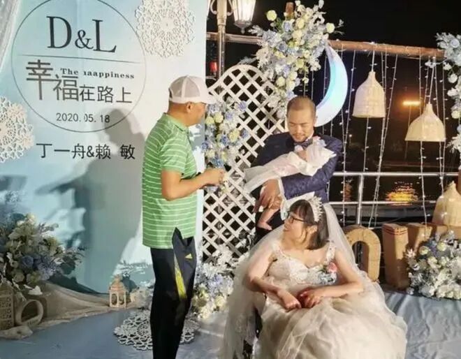 当天参加的只有一些亲人、挚友、粉丝,赖敏在众人的见证下,穿上了一直想穿的婚纱,圆了自己的一个梦。