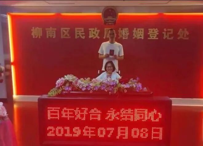 2019年7月8日,丁一舟和赖敏终于如愿领了结婚证,他们为了庆祝这一刻,还把自己的结婚照放在了微博上,得到了广大网友的一致祝福。