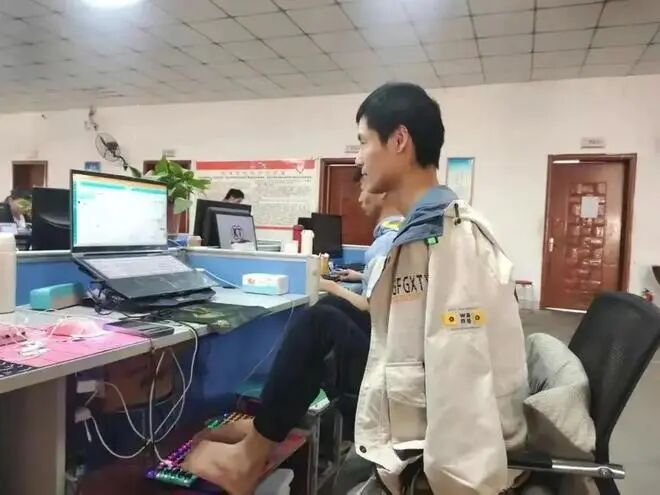 他成了唯一一个用脚打字的客服,甚至,还被评为优秀客服人员。
