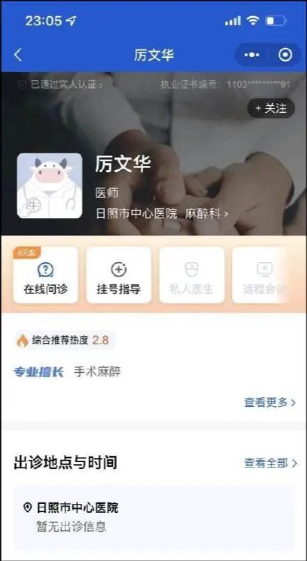 而疑似涉事医生的相关信息也被网友扒出来,他叫厉某华,职称为麻醉医师。