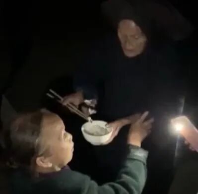当一行人赶到德良家时,德良90多岁的母亲已经在门口等待多时,她端着一碗米饭亲手喂德良。