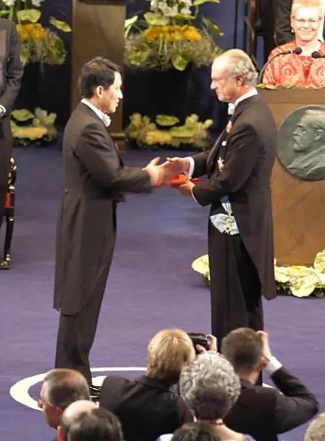 在咔嚓咔嚓的闪光灯下,日本最年轻的诺奖得主,畏畏缩缩地现身了。