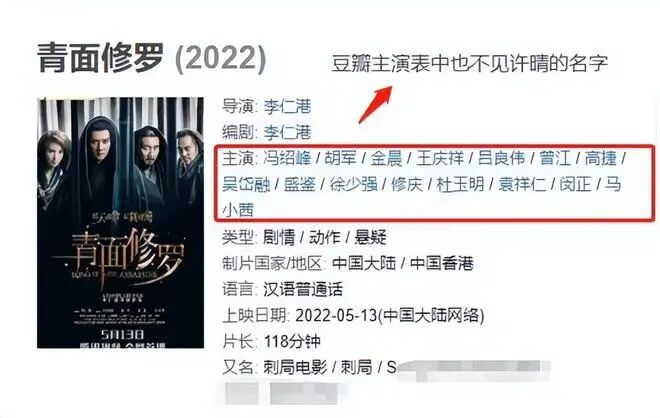 最近,胡军等人主演的电影《青面修罗》上映,因为疫情原因,片方决定采取线上播放,但是细心的网友发现,原本许晴的角色被换成了另一个演员。
