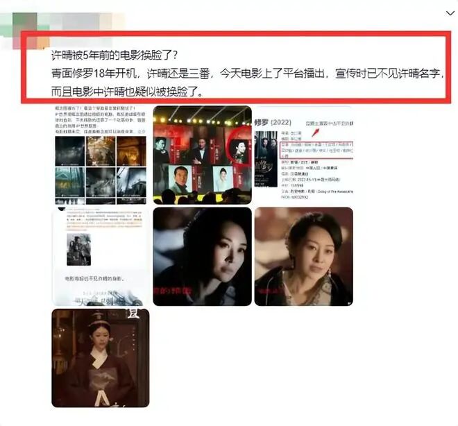 近日,许久未露面的许晴上了热榜。三年前的电影《青面修罗》惨遭换脸除名,电影官方账号以及海报都把有关她的信息删除的一干二净。