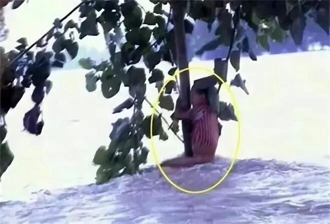 奶奶抱着江珊一路摸索,终于她抓住了一棵树,奶奶第一时间把江珊举了起来,让她牢牢抓住了,随后自己赶紧游到江珊的背后护着自己的孙女,生怕被冲下来的杂物伤到年幼的孩子。