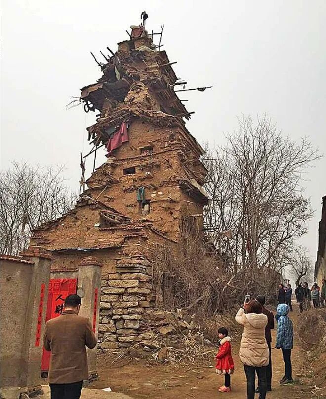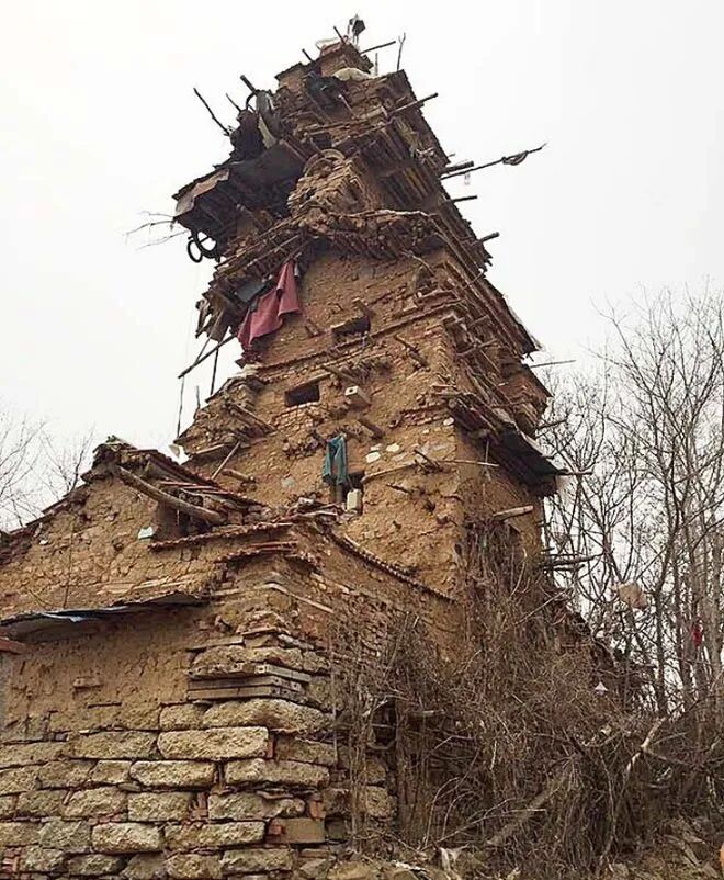 2016 年7月,7层小楼正式竣工,可是怎么看也不像是能住人的房子,说是7层小楼实际上也就只有三层楼的高度,而且越往上房间就越小,根本没办法住人,看上去倒像是个寺塔。