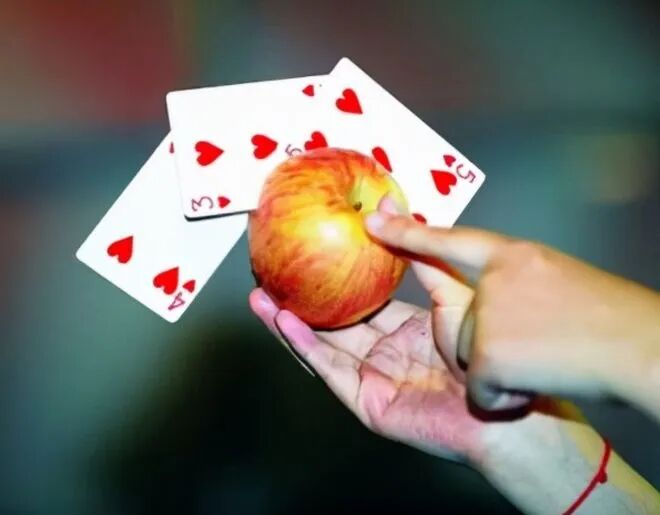 后来,他不仅能够把扑克牌扎进柔软的木板中,而且还能够扎进胡萝卜、黄瓜、西瓜、苹果等水果中。