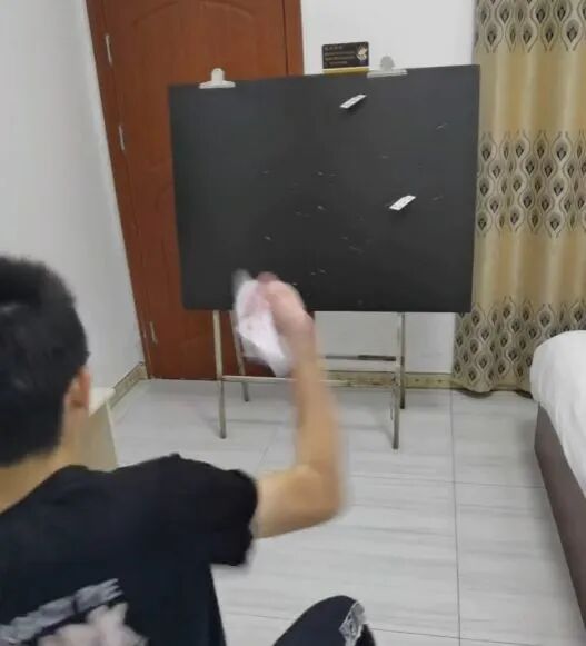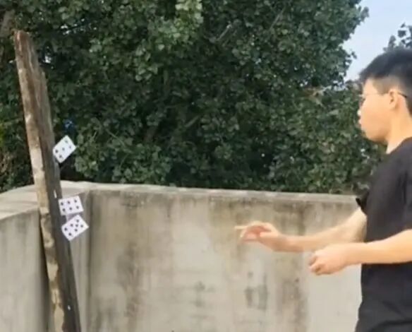 从这些视频中,刘富铭了解到有些技艺高超的运动员可以像电影中展现的那样,把纸牌扎进木板或者墙壁中。