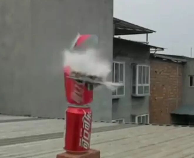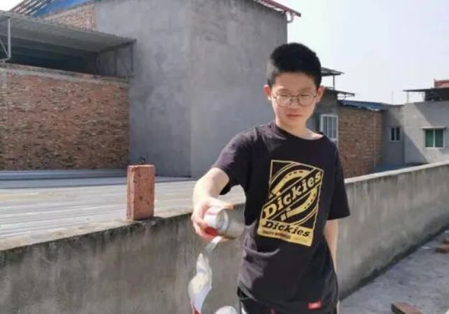 2021年2月24日,刘富铭上传了自己在顶楼阳台用纸牌击破易拉罐的视频。