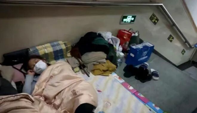 为了省钱,冯双双和母亲在医院楼道里打起了地铺。