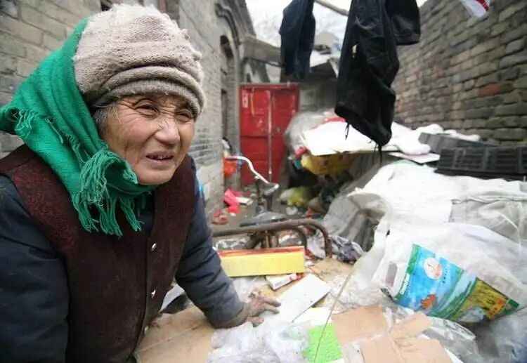只见母亲湿漉漉的脸上粘满了花白的头发,坐在小板凳上用双手支撑着身体在地上艰难爬行,滚滚流下的汗水在马路上留下了一道长长的印迹。母亲以往收购废品是在自己腰上拴上一个大塑料袋,收到的废品就装在塑料袋里。