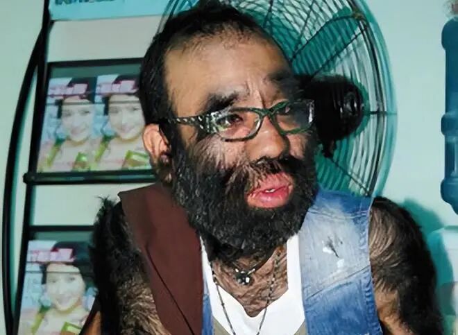 他平均每平方厘米的皮肤上生长了41根毛发,全身毛发覆盖面积超过了96%,在世界范围内都属罕见。