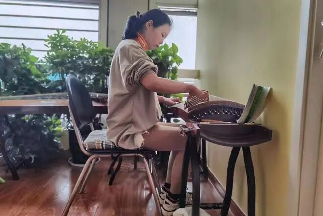 每逢周六周日,周月莹都会骑着单车去老师家学习弹古筝。