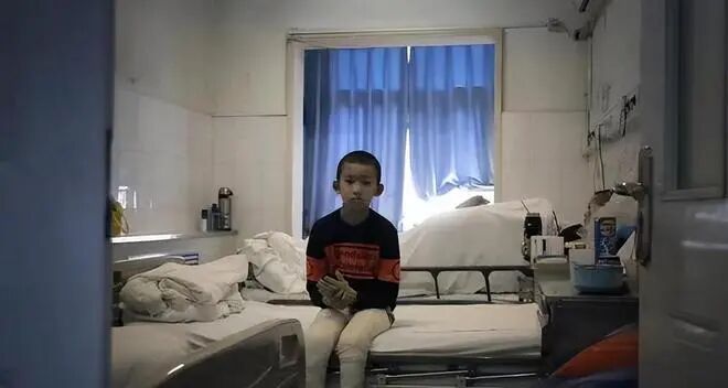 周京奥在姐姐的保护下,烧伤面积60%,其中臀部与腿部最为严重。