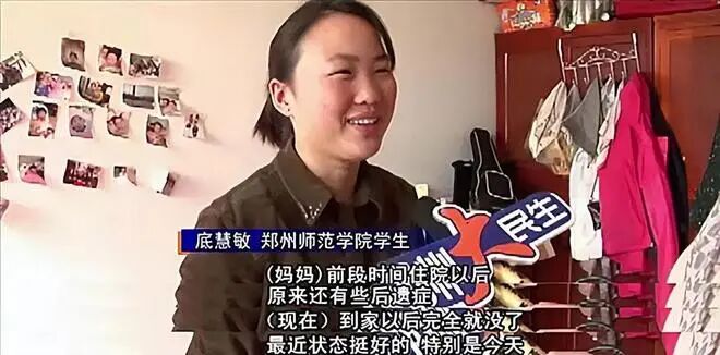 她的一志愿是河南农业大学,本想学农回家报效家乡,但是现在上了郑州师范,成为一名老师,她觉得也是理想化的职业。进入大学之后,底慧敏直接把母亲也带了过去。