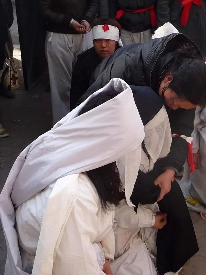 2007年8月,在湖南怀化,一位中年妇女带着三个子女,大闹其前夫的灵堂,并在家中翻箱倒柜,抢夺遗产。
