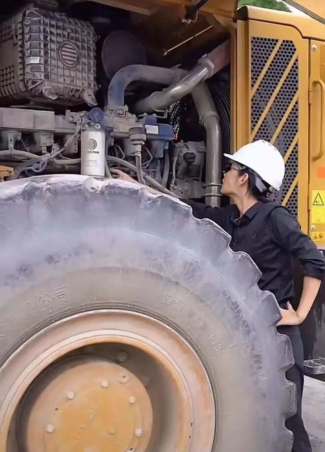 下车时,他霸气侧漏的犀利眼神飘向工人,示意工人学着点。