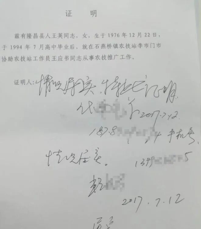 而且,王英还说,在考试之前,她还给隆昌县人事局提供了一份证明书,证明自己的工作年限符合要求。