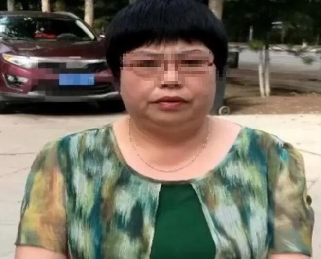 女子穿着一件灰色的碎花连衣裙,两鬓有些许的白发,眼角通红,手里还拿着好几份资料。