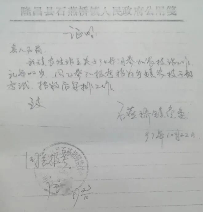 这份证明上是当时的石燕桥镇镇长唐友德(化名)亲笔写的,还盖了镇党委的印章。