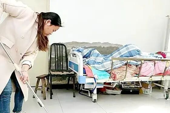 所有的工资,全部用来给父亲买护理用品,她没有时间也没有闲钱打扮自己,身上的衣服都是别人送的。