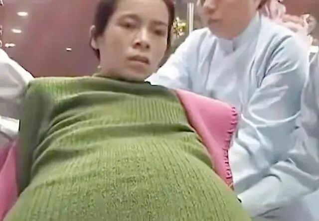 “产妇”面色苍白,骨瘦如柴,腹部高高隆起,像充满气的气球,仿佛随时会爆炸。
