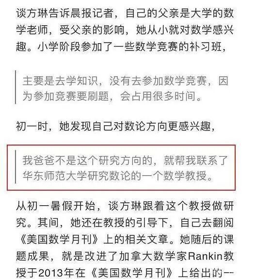 当谈方琳解释这个结论是自己在初三时得出以后,不仅在科学界引起了轩然大波,也引得很多家长的关注。