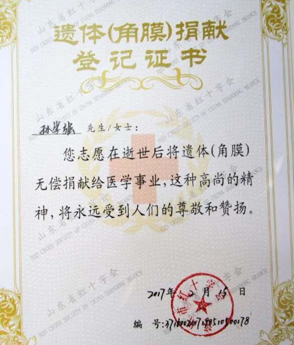 所以和妻子商量过后,他做出了一个不同寻常的决定:在他死后,孙学强会把自己的眼角膜还有其他身体器官捐献出来。