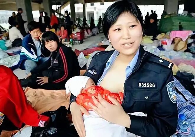 2008年5月,汶川地震期间,一张女民警在废墟中哺乳的照片,在全网疯传。