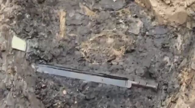仔细辨认后发现,这竟然是一柄宝剑,宝剑的剑鞘也非常完整。