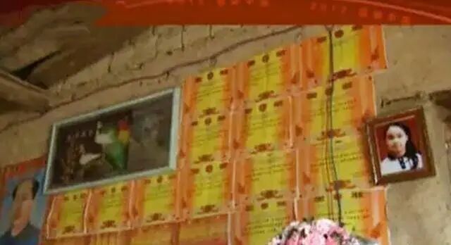 在何玥的家里,用泥墙垒起的房子干净整洁,只见墙上到处都贴满了何玥的学习奖状。