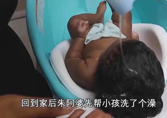 回家以后,大家发现这个婴儿身上全部都是痱子,朱阿婆立刻开始给婴儿洗澡。朱阿婆在草丛中发现婴儿的时候就发觉了他的皮肤很黑,朱阿婆以为这是因为婴儿被抛弃在草堆里太久,身上沾染了尘土。