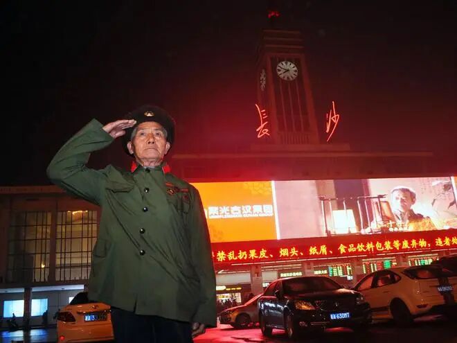2013年11月17日上午,北京天安门广场晴空万里。这天,毛主席纪念堂来了一位特殊的瞻仰者,一位来自湖南省新化县86岁的老人。老人身穿军装,看着迎风飘扬的五星红旗,他激动万分。