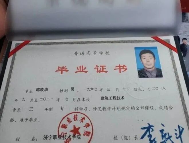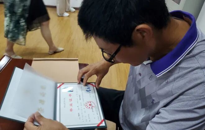 接受了现实后,郇政华再次回到了工地里做自己的老本行,那张毕业证书被他锁在了抽屉了。