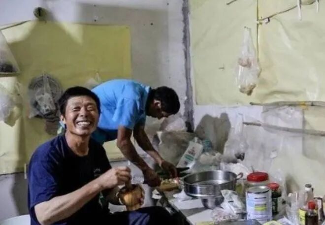 提到这个话题工友们之间的氛围有些沉重,郇政华将盒饭放在地上,他拍了拍身边人的肩膀。