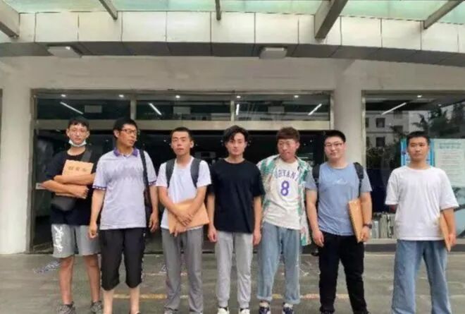 在学校,郇政华和同寝的舍友,以及学校最后进行了一张合照。
